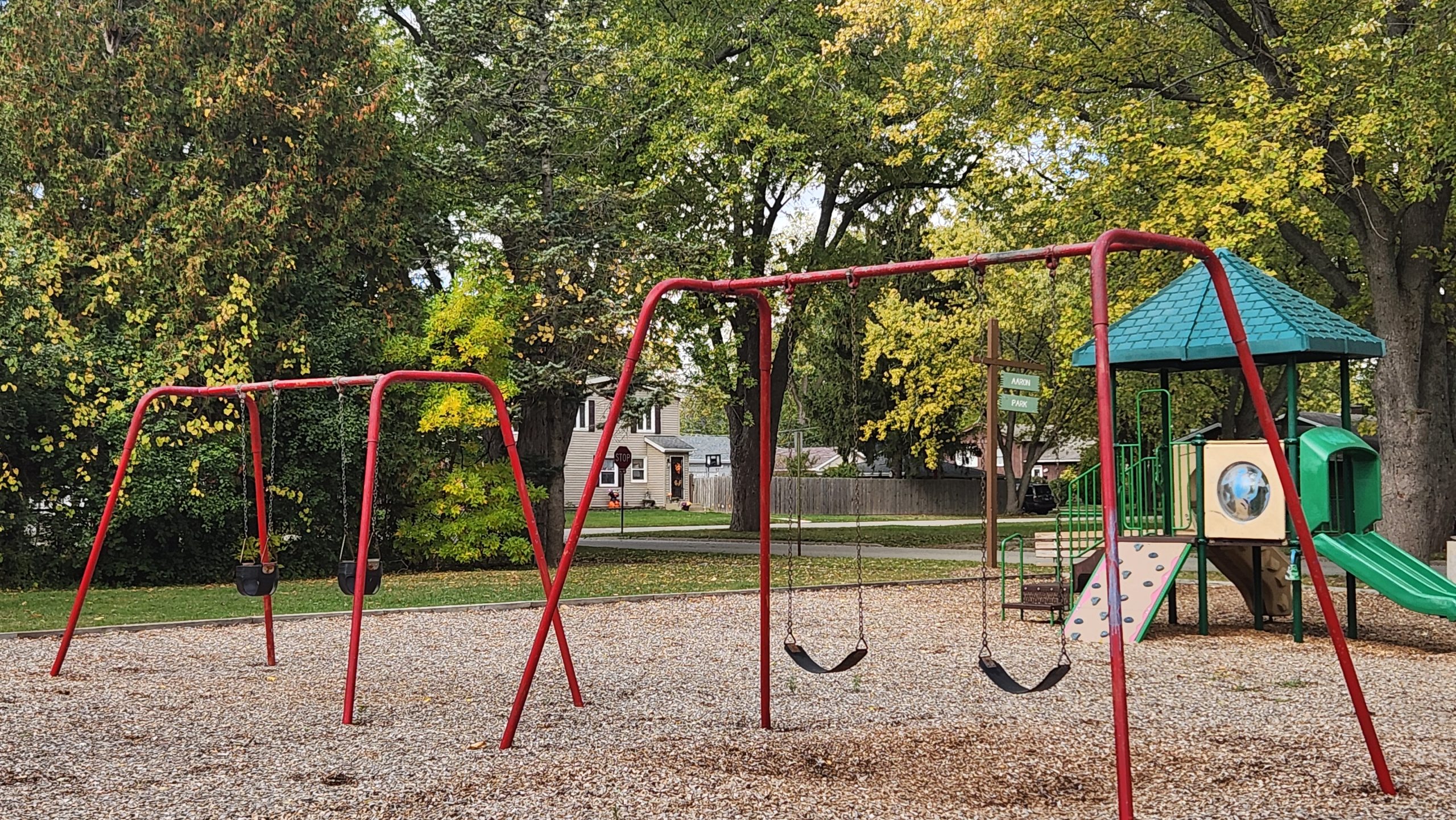 Aaron Park is a 0.5-acre neighborhood park located at 32nd Street and Gilboa. The playground, installed in 2014, features equipment designed for children ages 2-12 including a DNA Climber, dual slides, a mock rock-climbing feature, and belt and bucket swings.